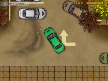 Halte das kleine Auto an der angegebenen Stelle an. Verfolge die Route des Autos und pass auf, dass du nicht gegen Hindernisse fährst oder von der Straße fliegst.