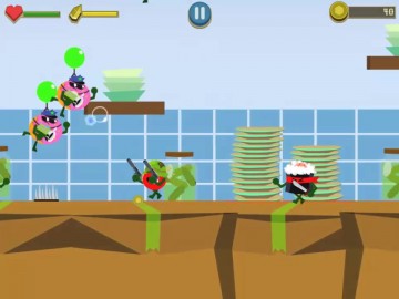 Viel Spaß mit diesem lustigen neuen Spiel Food Gang Run ist ein exklusives Online-Spiel für PC, Handy und Tablets!! Steuern Sie eine der drei kleinen Figuren, eine Tomate, eine Banane und einen Brokkoli, die Ihre guten Fähigkeiten brauchen, um sich zu bewegen und ihre Punktzahl zu verbessern! Eine Gruppe von Freunden, eine Tomate, eine Banane und ein Brokkoli, übernehmen die Küche, um so weit wie möglich zu kommen und so in der Lage sein, zu entkommen, aber auf ihrem Weg werden sie viele Feinde und Hindernisse wie fliegende Polizei Donuts, Sushi mit ihren Schwertern, die Pizza-Scheiben mit ihren Kanonen, die riesigen Kürbisse mit ihren riesigen Kanonen und viele andere Feinde treffen!!! Weiche den Feinden aus und sammle viele andere Waffen, um jedes Level zu schaffen. Spielfunktionen:- Wähle aus 3 einzigartigen und verrückten Charakteren- Schalte mehr als 50 erstaunliche Fähigkeiten frei- Sammle Sterne, um tolle Belohnungen zu erhalten